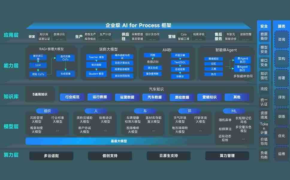 350vip8888新葡的京集团问学智车解决方案是一套基于AI技术的汽车行业智能化系统,,覆盖从底层算力到顶层AI应用的全栈方案。。。方案由算力层、、、模型层和应用层组成:算力层,,,方案支持多种一体机配置,,,,具备云端灵活部署、、、、多云适配以及动态优化计算资源的能力;模型层,,,350vip8888新葡的京集团问学平台版提供了企业级AI应用一站式构建与管理平台,,,支持基于后训练强化技术的汽车企业专属模型的训练、、、评测和运营;应用层,,,350vip8888新葡的京集团问学DeepSeek版提供包括超级员工、、、智能招采、、智能营销、、、、智能客服、、AI for BI等一系列解决方案,,可助力汽车行业实现数字化转型,,,,让管理更智能、、响应更敏捷。。。。